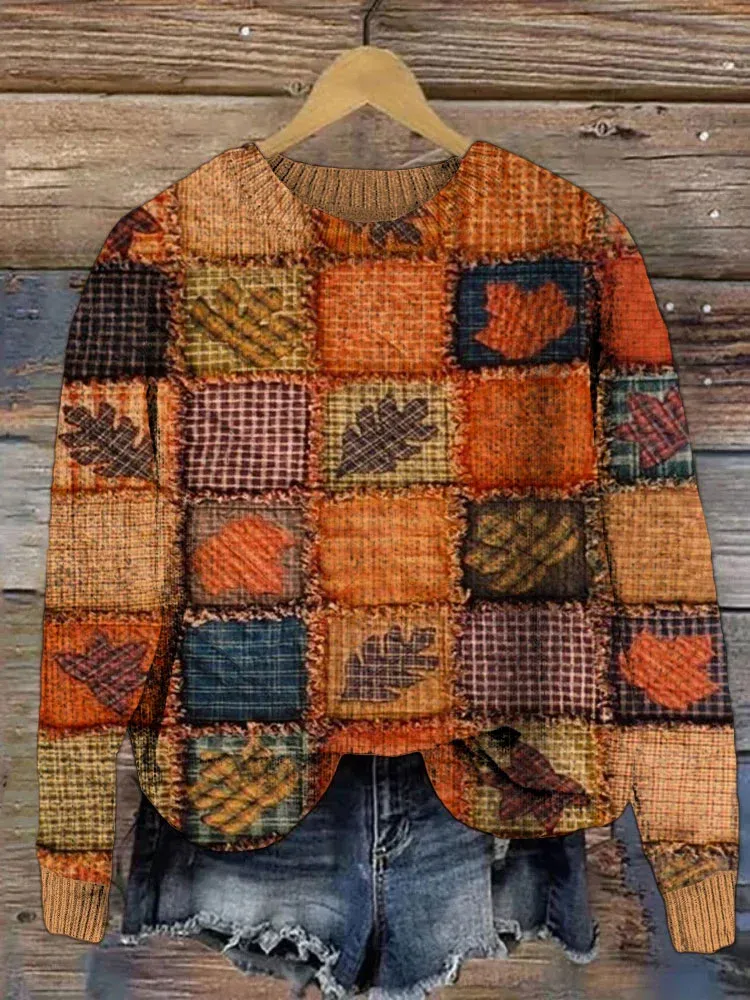 Autumn Thanksgiving Maple Leaf Print Simple Loose Sweater