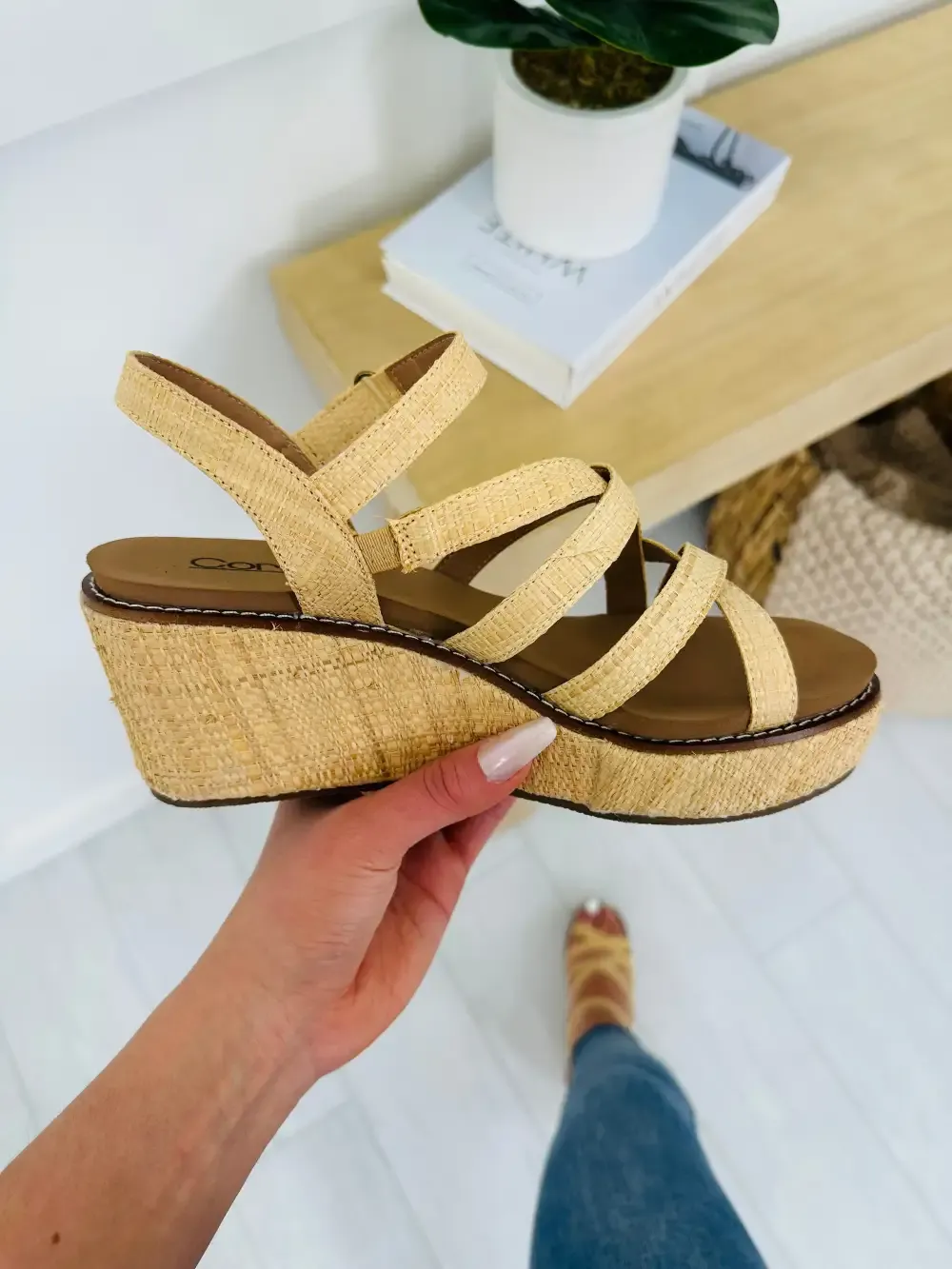 Why tiptoe through life when you can bloom and go in style with these neutral raffia wedge sandals?