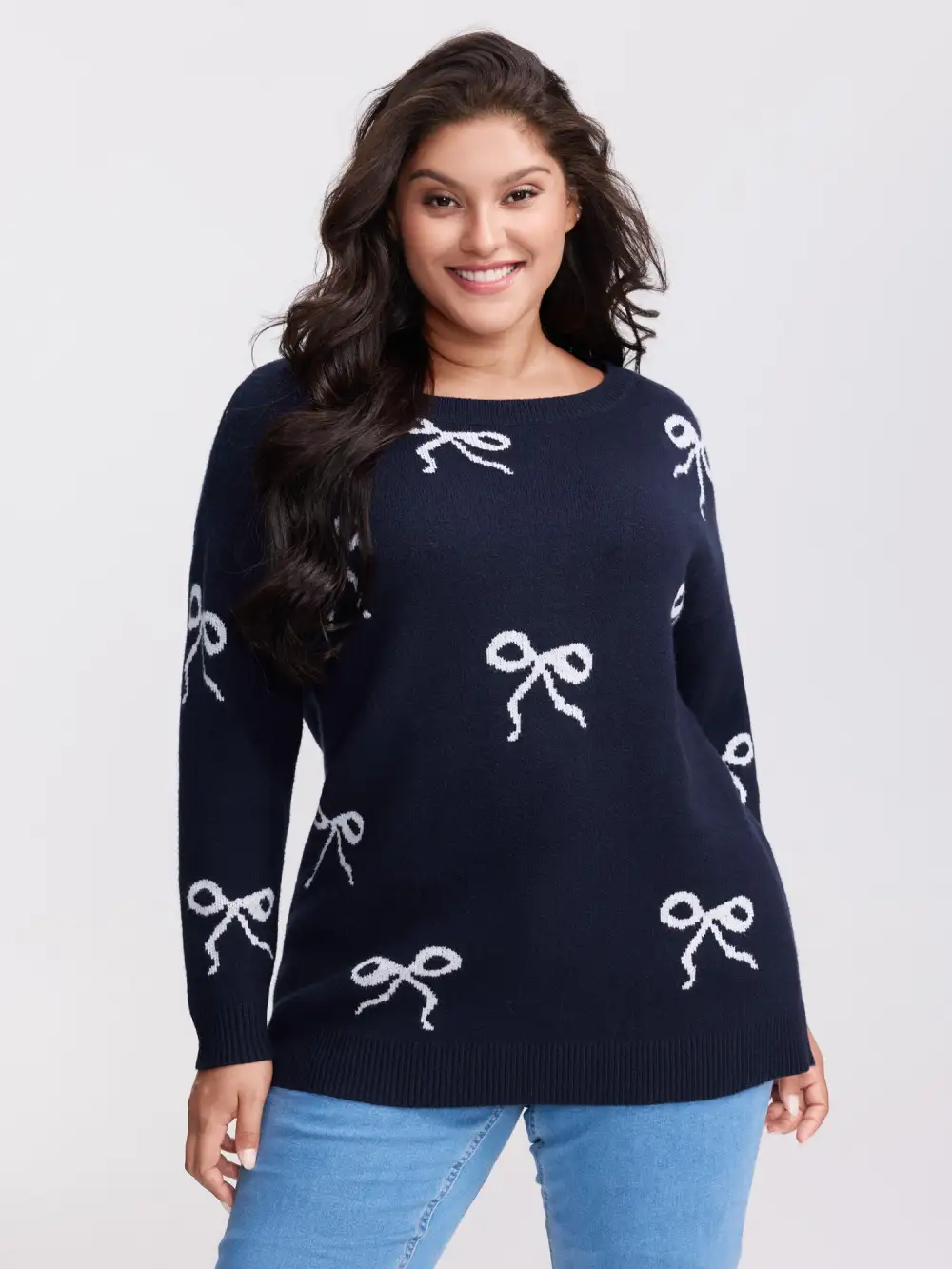 Shop Supersoft Bowknot Boat Neckline Pullover now and redefine your style with confidence at BloomChic. Tailored for mid and plus-size women. This trendy Sweaters Cardigans Women, sizes 10-30. Color:Indigo;Neckline:Boat Neck;Sleeve Type:Drop shoulder sleeve;Prints:Non;Details:Contrast;Pocket:No-pocket;Belt:No-belt;Closure Type:Non