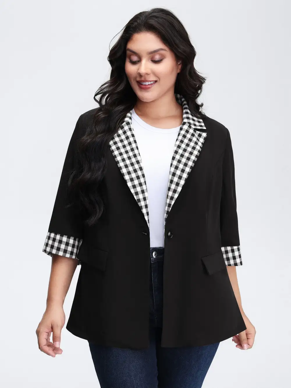 Shop Checkered Contrast Button Blazer now and redefine your style with confidence at BloomChic. Tailored for mid and plus-size women. This trendy Outerwear Women, sizes 10-30. Color:Black;Neckline:Suit Collar;Sleeve Type:Regular Sleeve;Prints:Non;Details:Button, Contrast;Pocket:Open pocket with flap;Belt:No-belt;Closure Type:Non;Lining:Lining