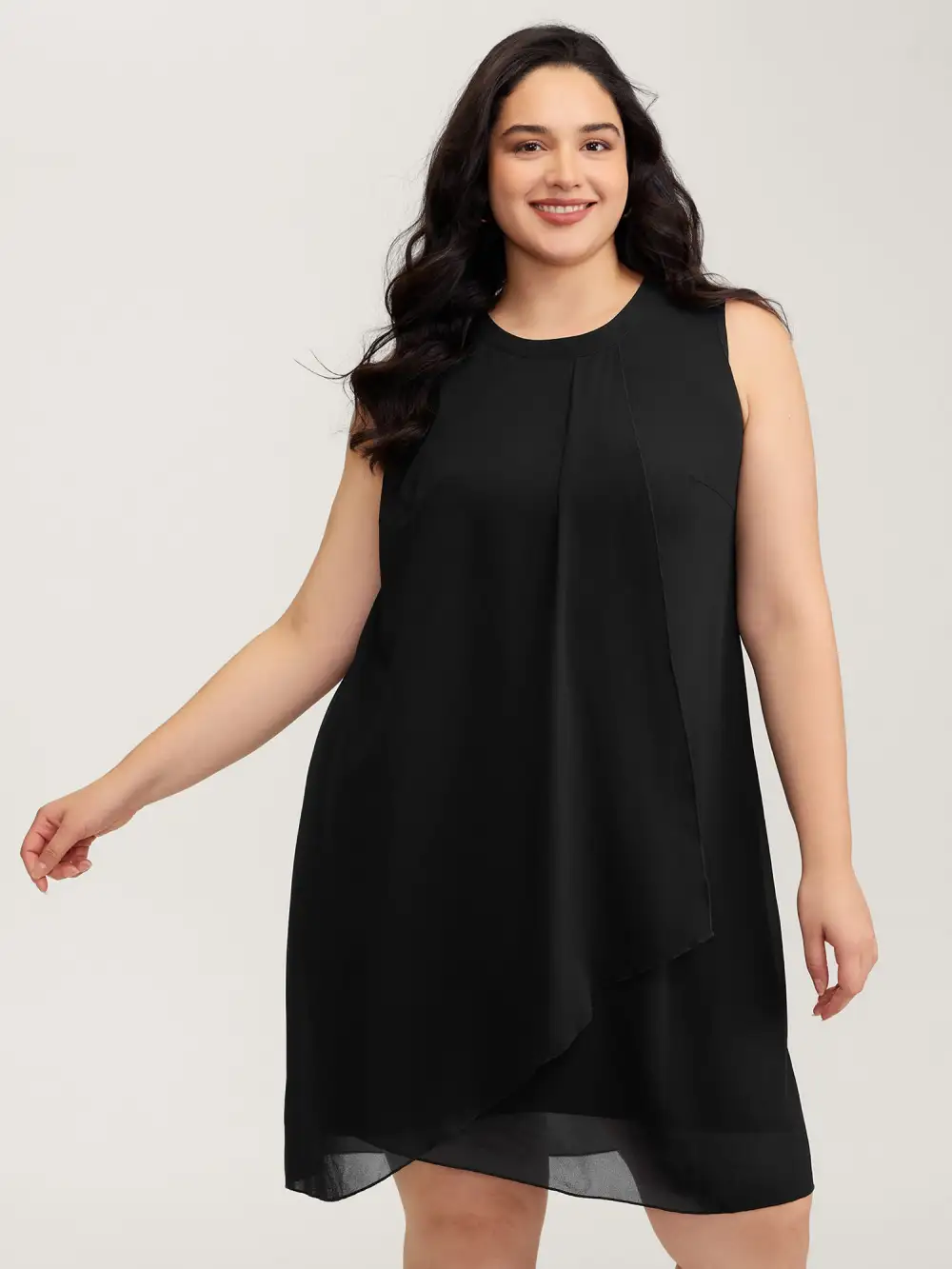 Shop Chiffon Sheer Pleated Knee-Length Dress now and redefine your style with confidence at BloomChic. Tailored for mid and plus-size women. This trendy Dress, sizes 10-30. You can never go wrong with BloomChic Dresses. Color:Black;Neckline:Round Neck;Sleeve Type:Sleeveless;Prints:Non;Pocket:Side seam pocket;Belt:No-belt;Closure Type:Non