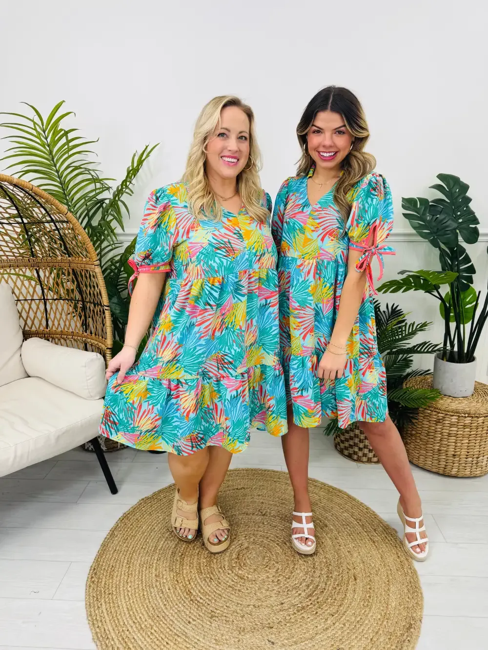 Designed with a vibrant tropical print, this piece features a flattering V-neckline and short sleeves with dainty tie details for an extra touch of flair. The breezy, flowy fit makes it a must-have for warm days, keeping you comfortable while making a statement!