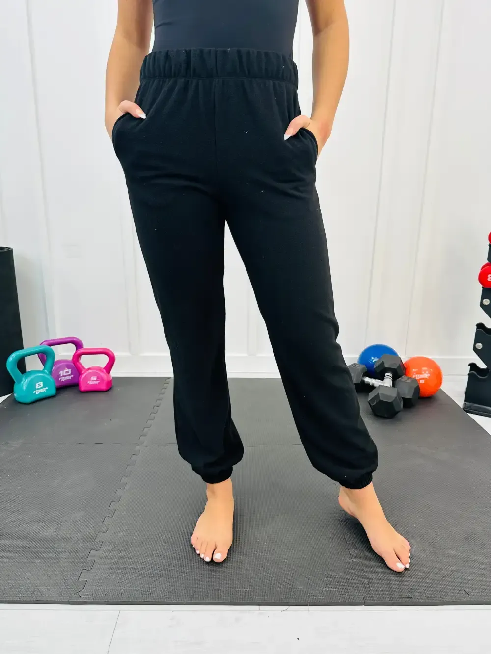 Featuring a stretchy waistband and soft fabric, they deliver all-day comfort for lounging or running errands. The cuffed ankles provide a relaxed yet polished fit, while the convenient pockets add a touch of functionality. Whether you're at the gym or chilling at home, these joggers are designed to keep up with your day.