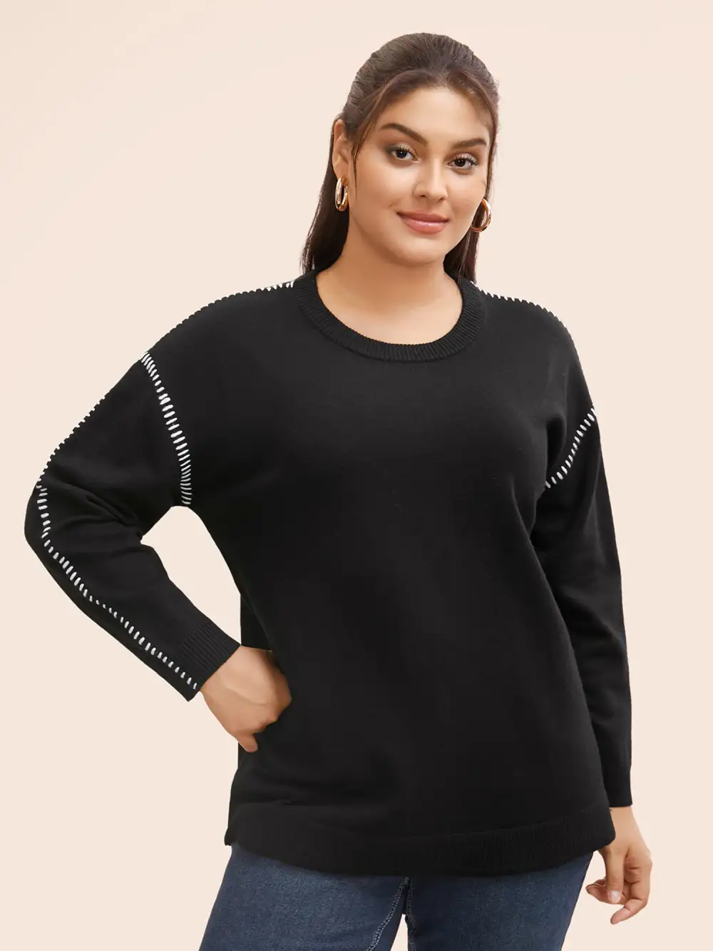 Shop Crew Neck Contrast Trim Drop Shoulder Pullover now and redefine your style with confidence at BloomChic. Tailored for mid and plus-size women. This trendy Sweaters Cardigans Women, sizes 10-30. Season:Winter;Color:Black;Style:Casual;Neckline:Round Neck;Sleeve Type:Drop shoulder sleeve;Prints:Non;Details:Contrast, Crochet;Pocket:No-pocket;Belt:No-belt;Closure Type:Non
