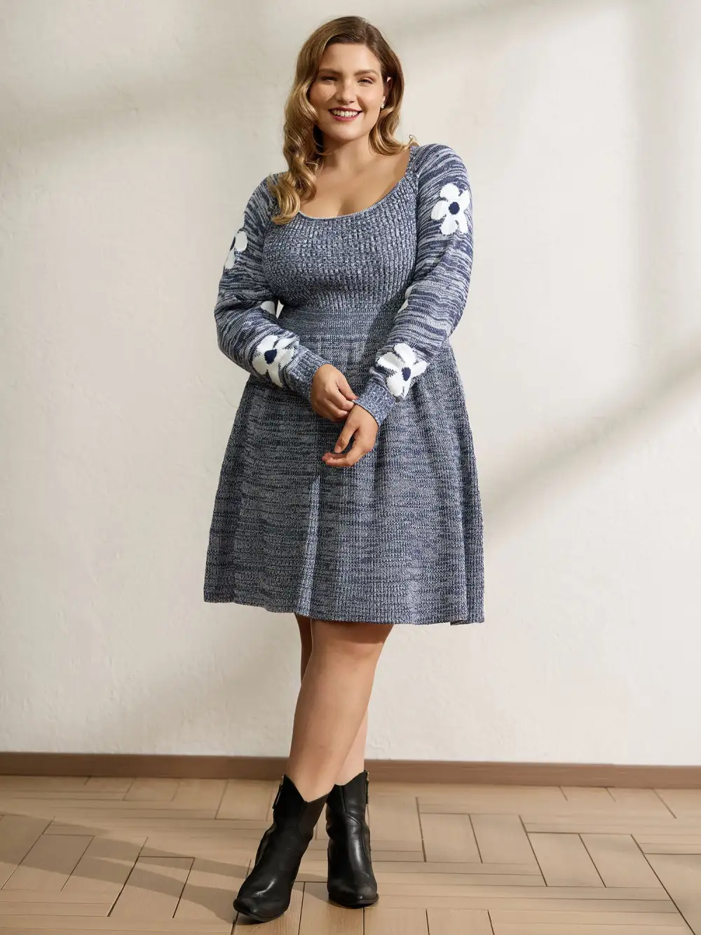 Shop Floral Jacquard Print Mixed Yarn Knit Midi Dress now and redefine your style with confidence at BloomChic. Tailored for mid and plus-size women. This trendy Dresses Women, sizes 10-30. Color:Indigo;Neckline:Square Neck;Sleeve Type:Raglan sleeve;Prints:Floral;Pocket:No-pocket;Belt:No-belt;Closure Type:Non