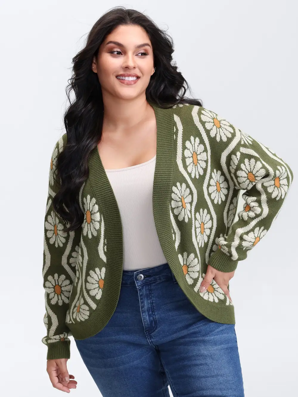 Shop Floral Pattern Jacquard Arc Hem Knit Cardigan now and redefine your style with confidence at BloomChic. Tailored for mid and plus-size women. This trendy Sweaters Cardigans Women, sizes 10-30. Color:Moss;Style:Casual;Neckline:V-neck;Sleeve Type:Regular Sleeve;Pattern Type:Natural Flowers;Prints:Floral;Pocket:No-pocket;Belt:No-belt;Closure Type:Open front without closure