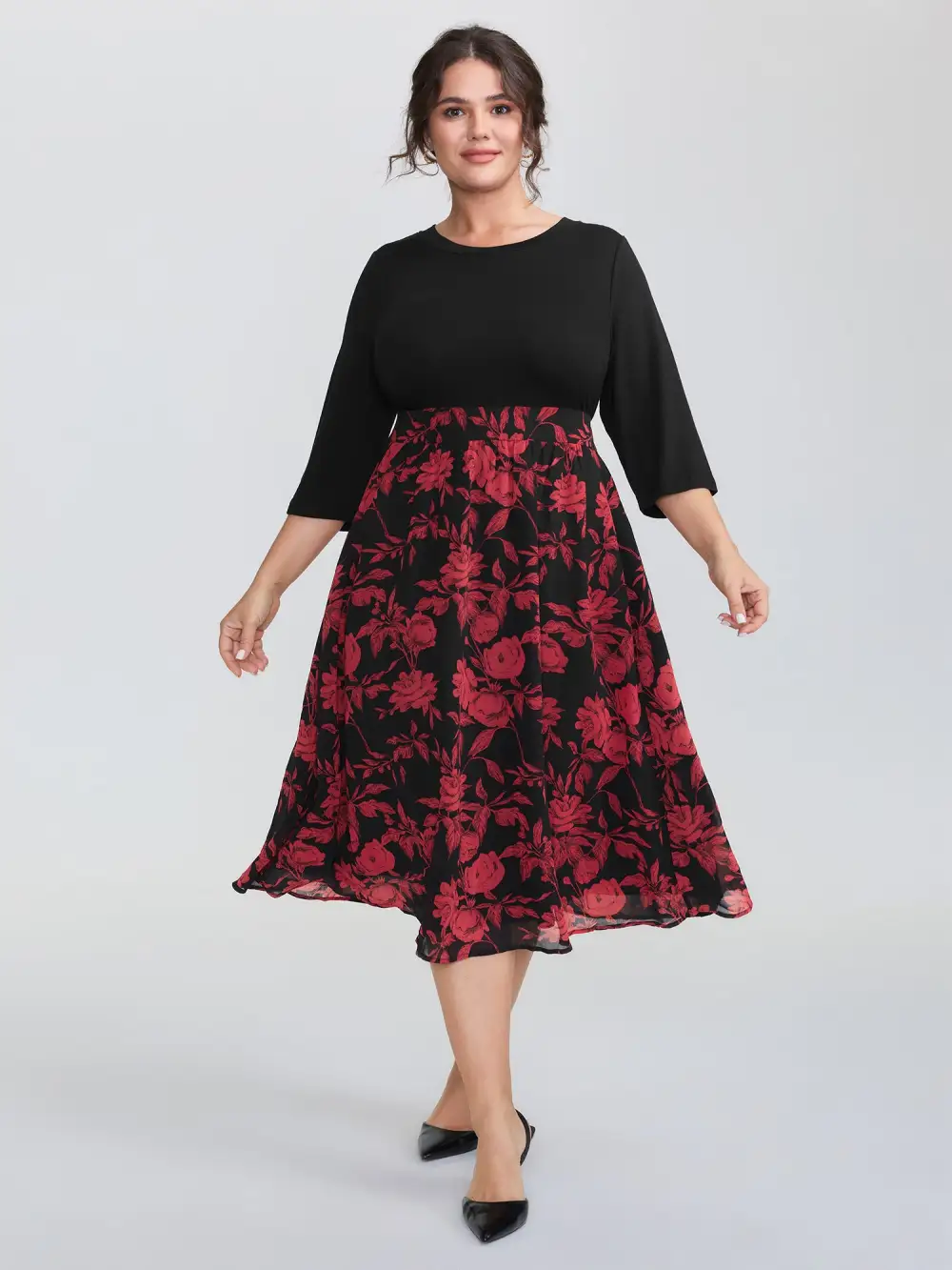 Shop Floral Shirred Waist Color Contrast Midi Dress now and redefine your style with confidence at BloomChic. Tailored for mid and plus-size women. This trendy Dress, sizes 10-30. You can never go wrong with BloomChic Dresses. Color:Black;Neckline:Round Neck;Sleeve Type:Regular Sleeve;Prints:Floral;Pocket:Side seam pocket;Belt:No-belt;Closure Type:Non