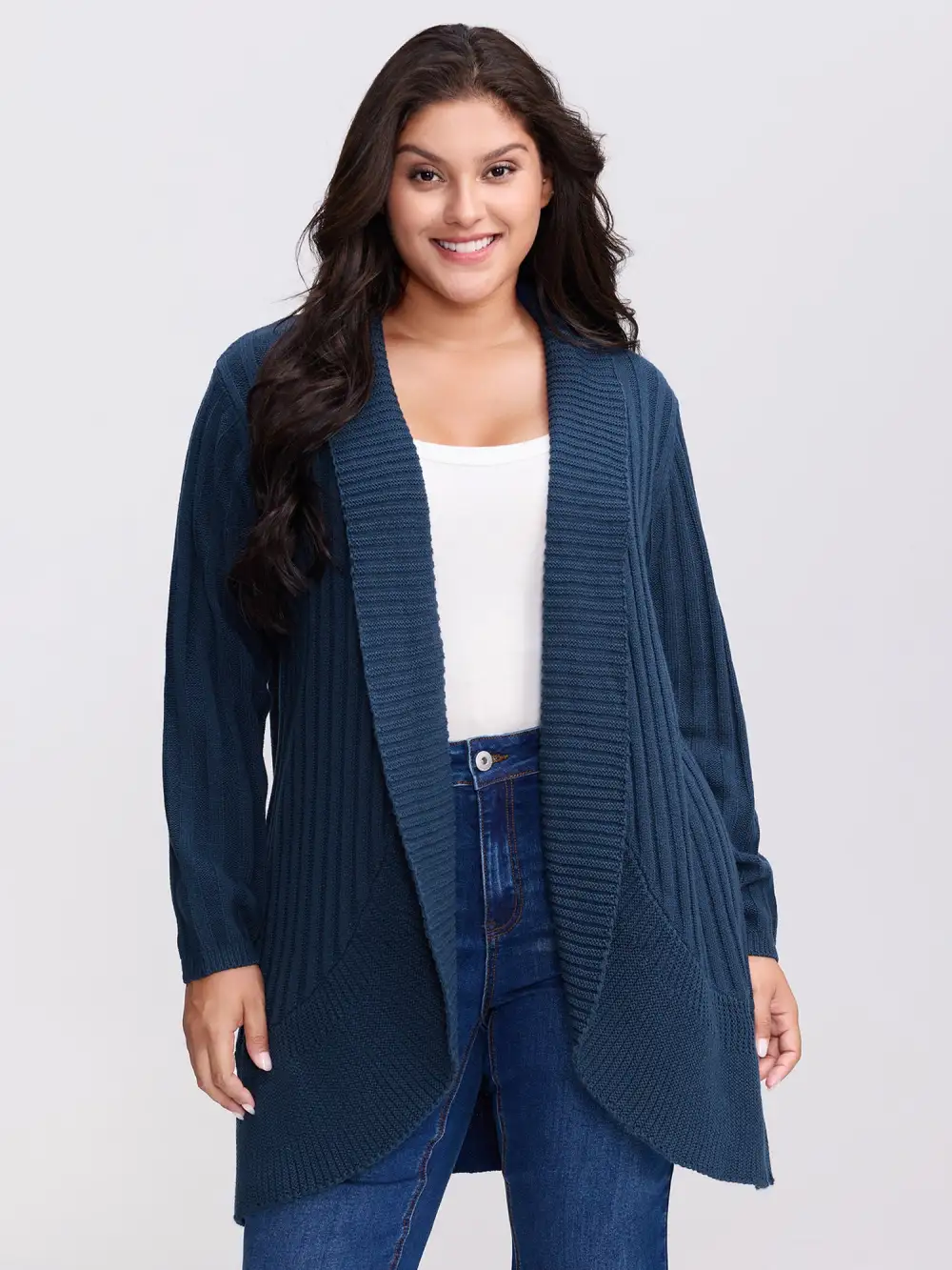 Shop Folded Collar Ribbed Curvy Knit Cardigan now and redefine your style with confidence at BloomChic. Tailored for mid and plus-size women. This trendy Sweaters Cardigans Women, sizes 10-30. Color:Aegean;Style:Casual;Neckline:Kimono collar;Sleeve Type:Regular Sleeve;Prints:Non;Details:Texture;Pocket:No-pocket;Belt:No-belt;Closure Type:Open front without closure