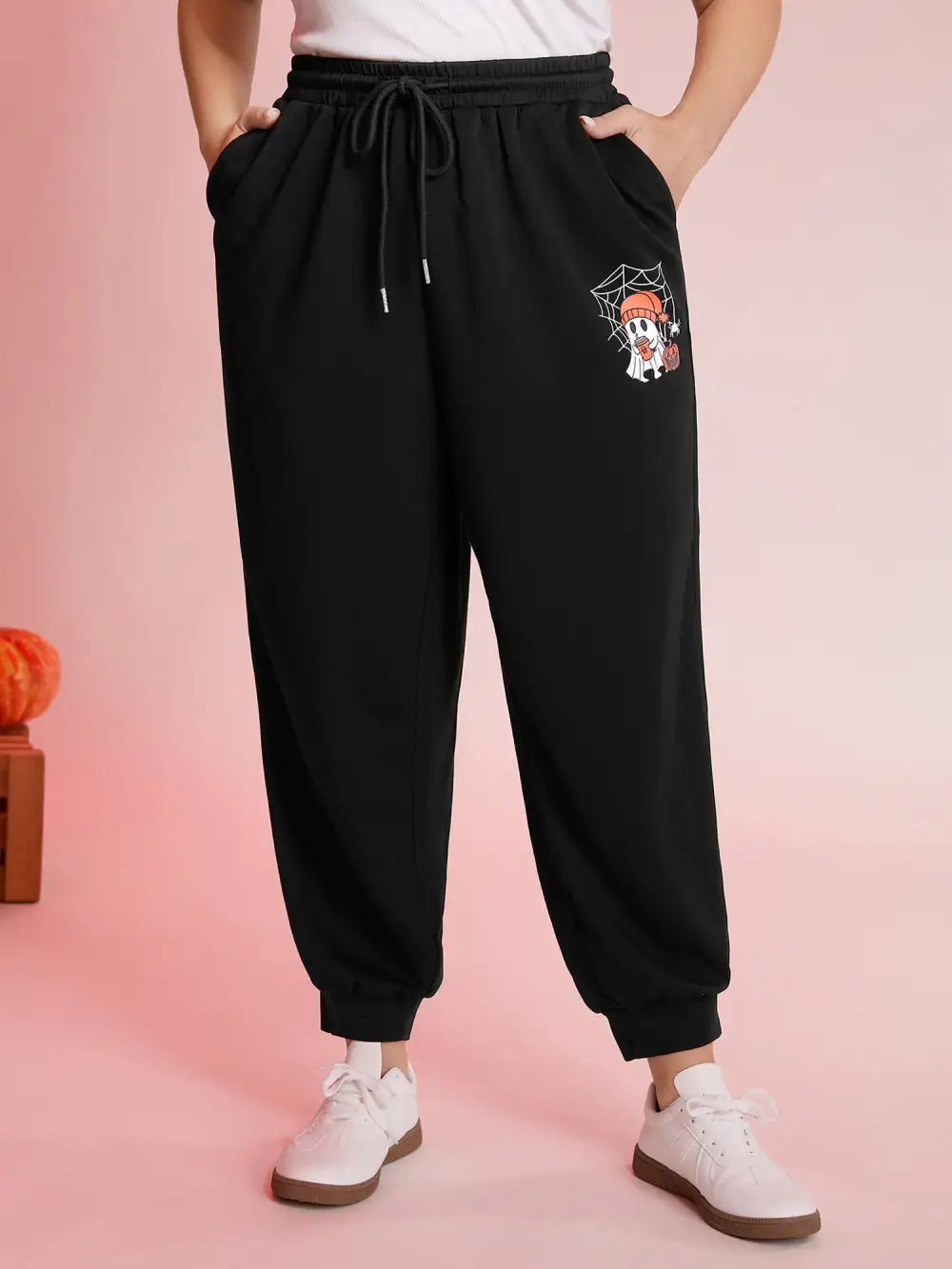 Shop Ghost Motif Cuffed Jogger Pants now and redefine your style with confidence at BloomChic. Tailored for mid and plus-size women. This trendy Bottoms Women, sizes 10-30. Color:Black;Waist Design:Mid Rise;Prints:Non;Details:Drawstring;Pocket:Slanted pocket;Belt:No-belt;Closure Type:Non