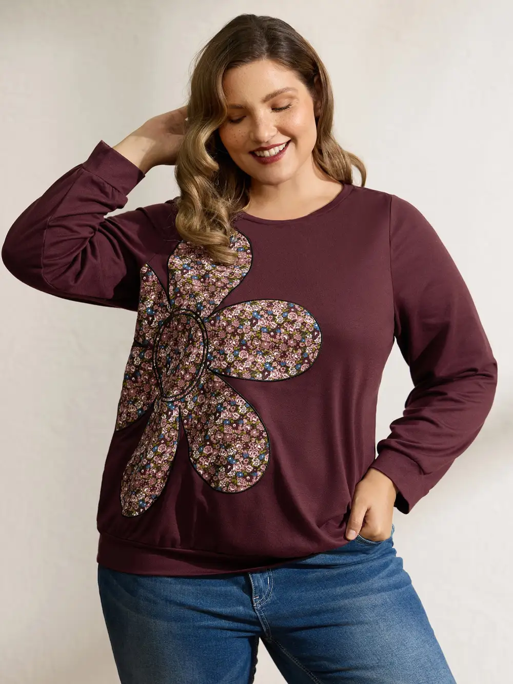 Shop Half Floral Applique Embroidery Sweatshirt now and redefine your style with confidence at BloomChic. Tailored for mid and plus-size women. This trendy Tops Women, sizes 10-30. Color:Burgundy;Neckline:Round Neck;Sleeve Type:Regular Sleeve;Prints:Non;Details:Embroidered;Pocket:No-pocket;Belt:No-belt;Closure Type:Non