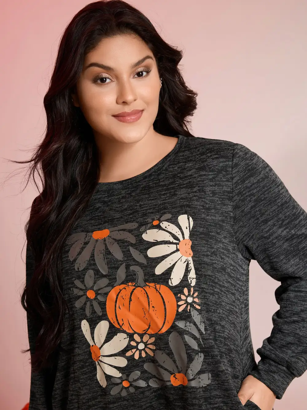 Shop Halloween Pumpkin Floral Pockets Tunic Top now and redefine your style with confidence at BloomChic. Tailored for mid and plus-size women. This trendy Tops Women, sizes 10-30. Color:DimGray;Neckline:Round Neck;Sleeve Type:Regular Sleeve;Pattern Type:Halloween;Prints:Non;Details:Non;Pocket:Side seam pocket;Belt:No-belt;Closure Type:Non