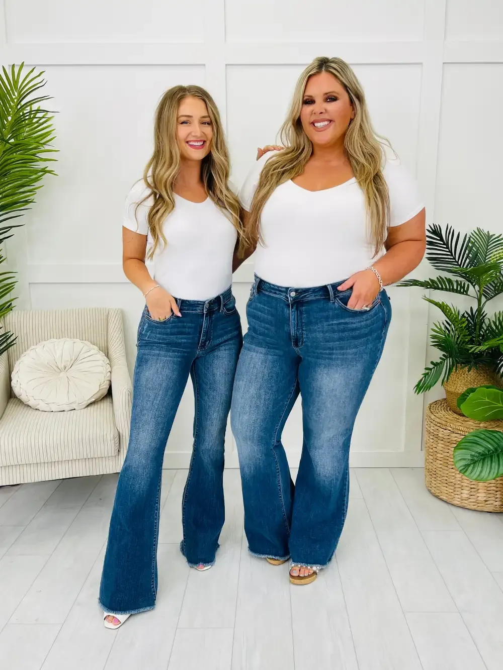Below is the specific sizing advice for Fade Into You Flare Jeans: