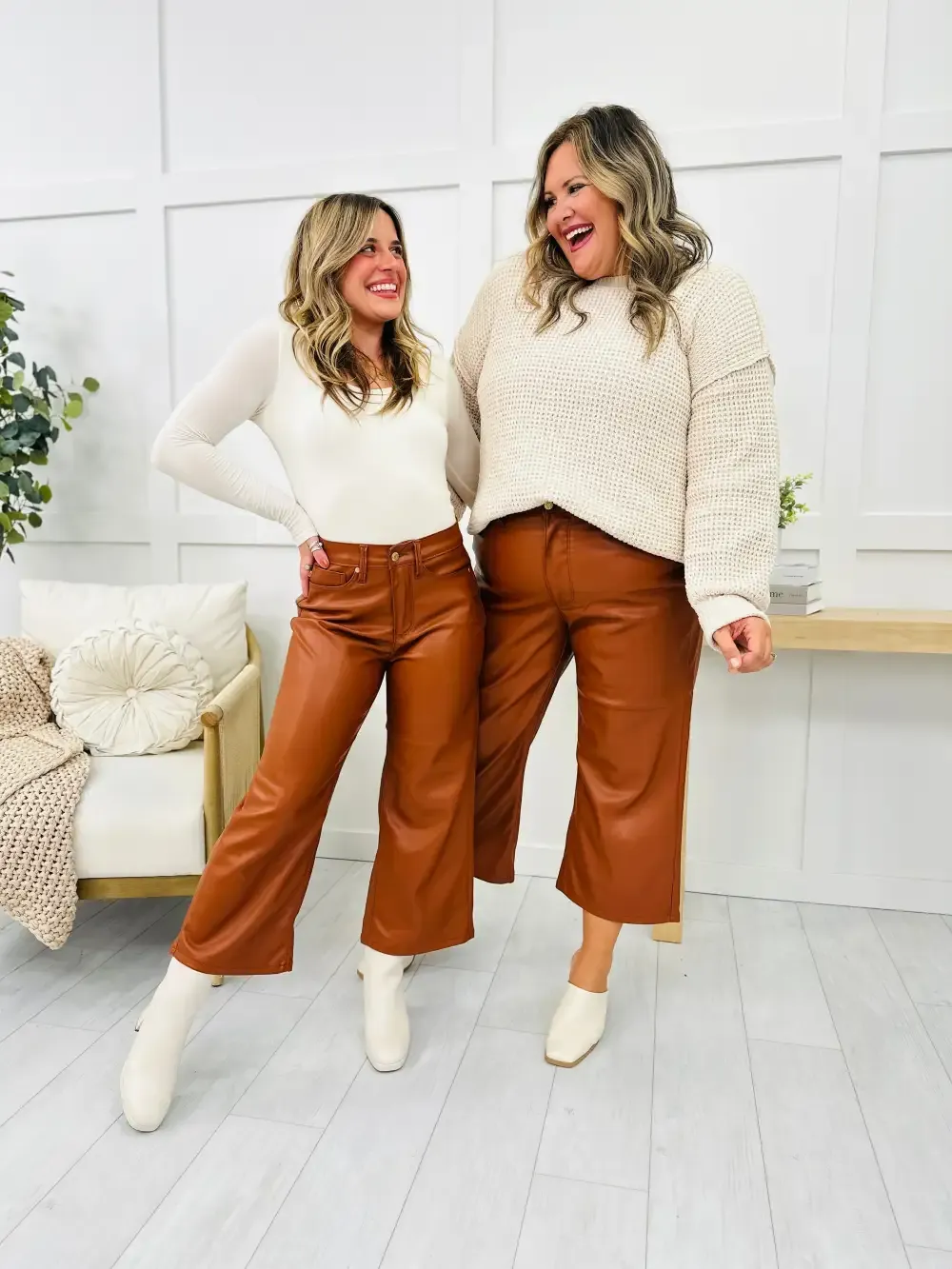 Judy Blue Leather or Never Tummy Control Faux Leather Wide Leg Cropped Pants in Reg/Curvy