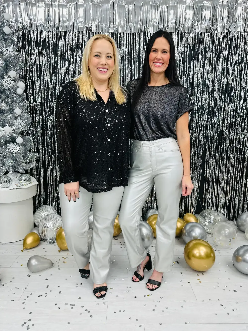 • Striking Silver Sheen.The faux leather finish adds an edgy yet elegant touch, perfect for parties, date nights, or turning heads wherever you go.