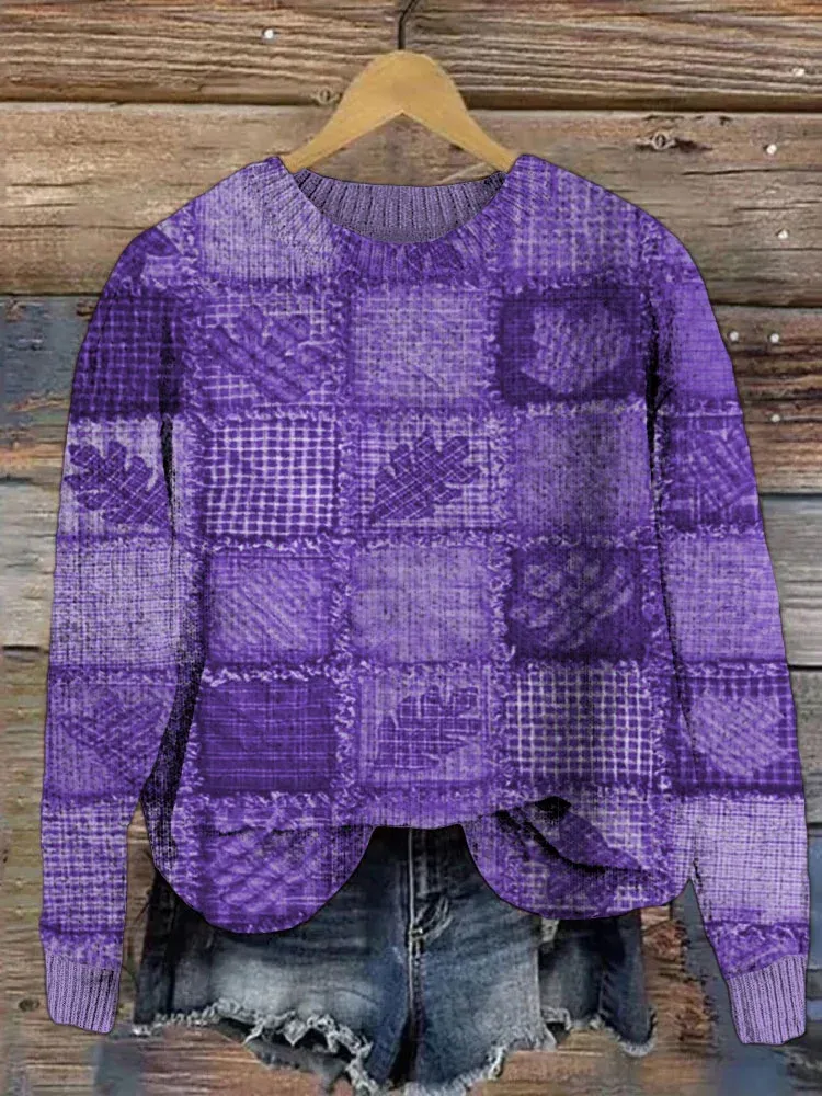 Ladies Alzheimer's Awareness Flowers Casual Crew Neck Sweater 10891845