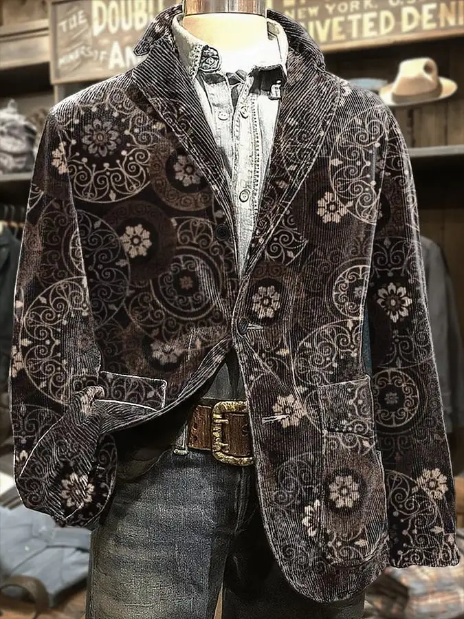 Men's Casual Retro Color Block Corduroy Jacket 11026123