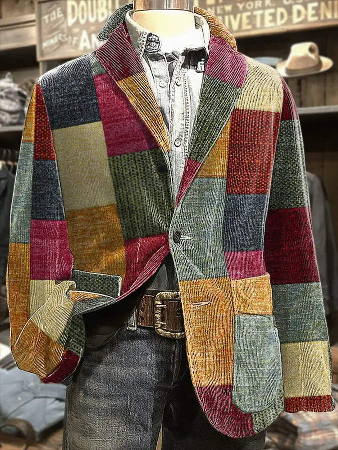 Men's Casual Retro Color Block Corduroy Jacket 11025641