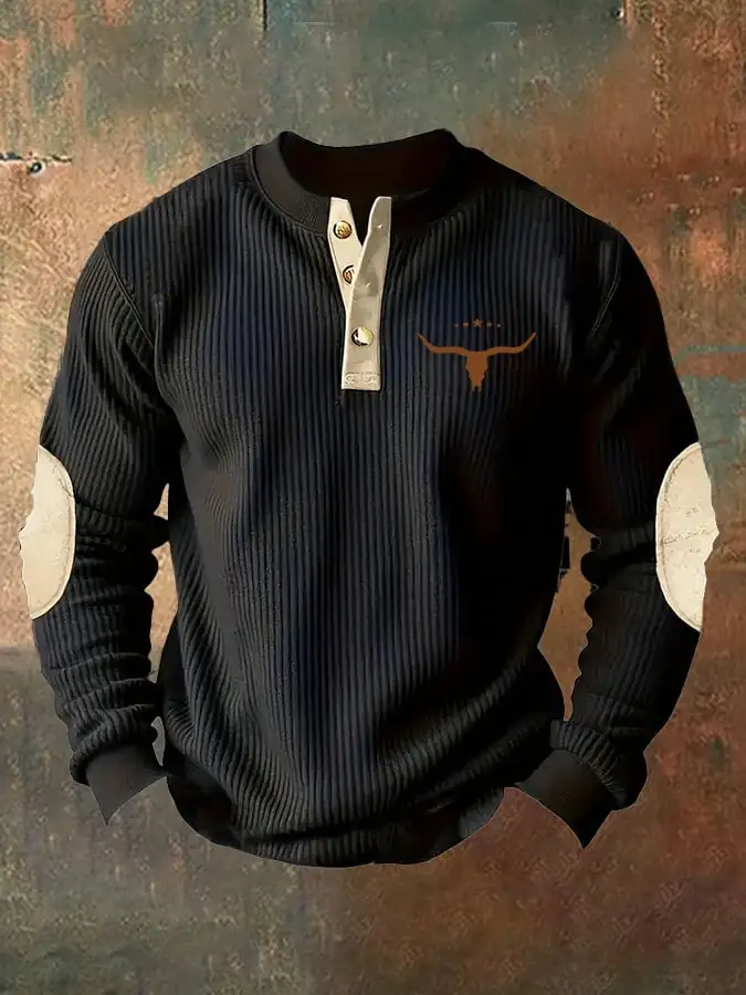 Men's Casual Waffle Colorblock Long Sleeve Henley 11026817
