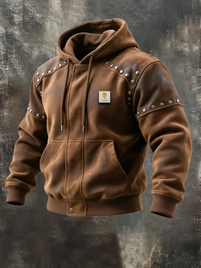 Men's Rivet Vintage Suede Hooded Warm Jacket