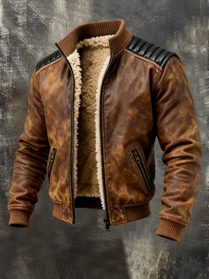 Men'S Vintage Distressed Leather Outdoor Jacket Cotton Coat