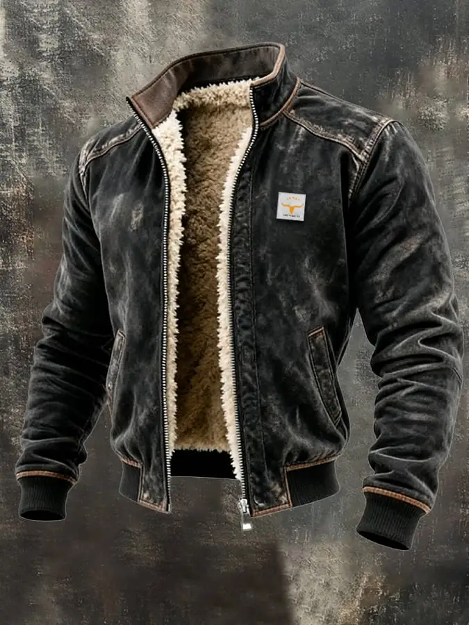 Men's Vintage Suede Splicing Warm Multi-Pocket Outdoor Jacket