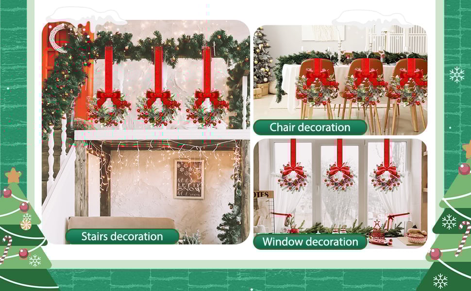 With this set of 6 mini Christmas wreaths, you can fill your kitchen, cabinets, and windows with warmth and cheer.