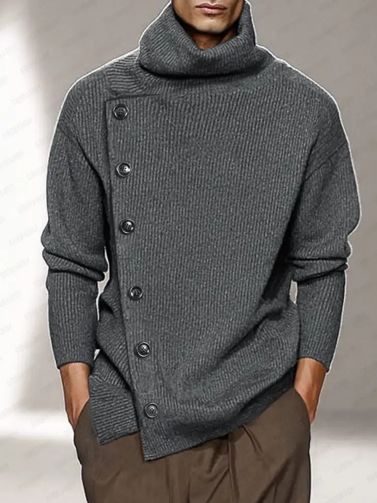 • Details: Pullover sweater with turtleneck, asymmetric button design, long sleeves