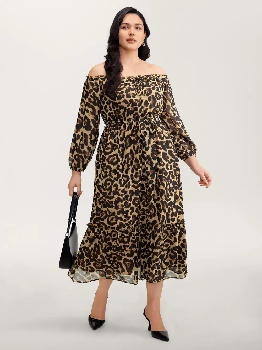 Shop Off-Shoulder Leopard Print Sheer Maxi Dress now and redefine your style with confidence at BloomChic. Tailored for mid and plus-size women. This trendy Dress, sizes 10-30. You can never go wrong with BloomChic Dresses. Color:Leopard;Neckline:One-shoulder neck;Sleeve Type:Puff Sleeve;Prints:Animal print;Pocket:Side seam pocket;Belt:Belt;Closure Type:Non