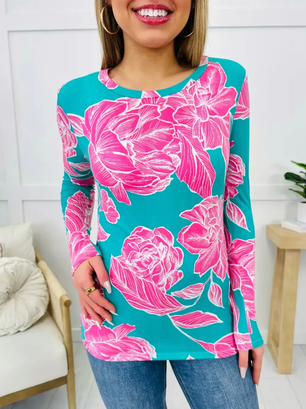 Bold, vibrant, and absolutely stunning—this floral long-sleeve top is a showstopper!