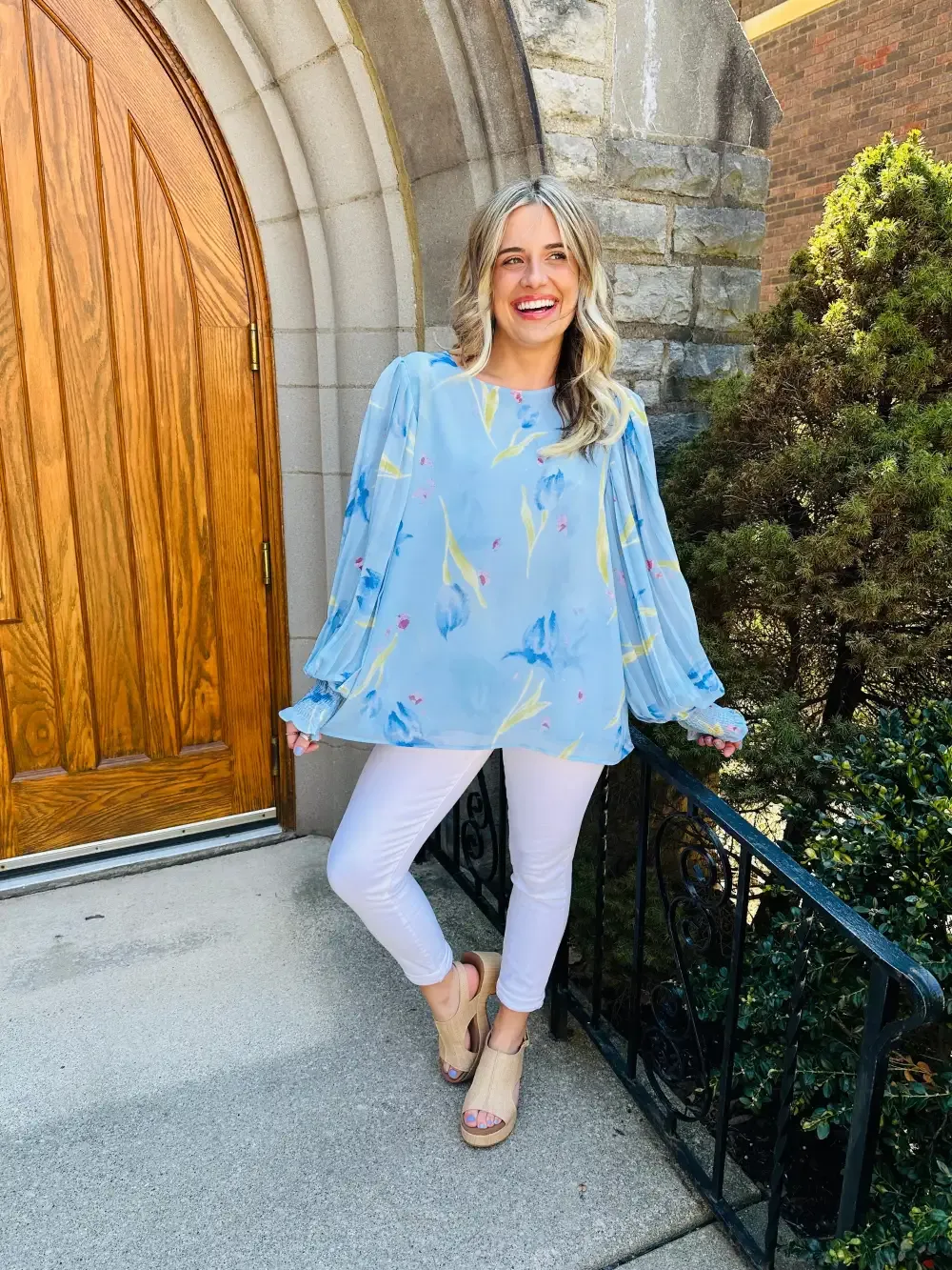 Light and dreamy, this blouse is a breath of fresh air with its delicate watercolor floral print and flowy silhouette!