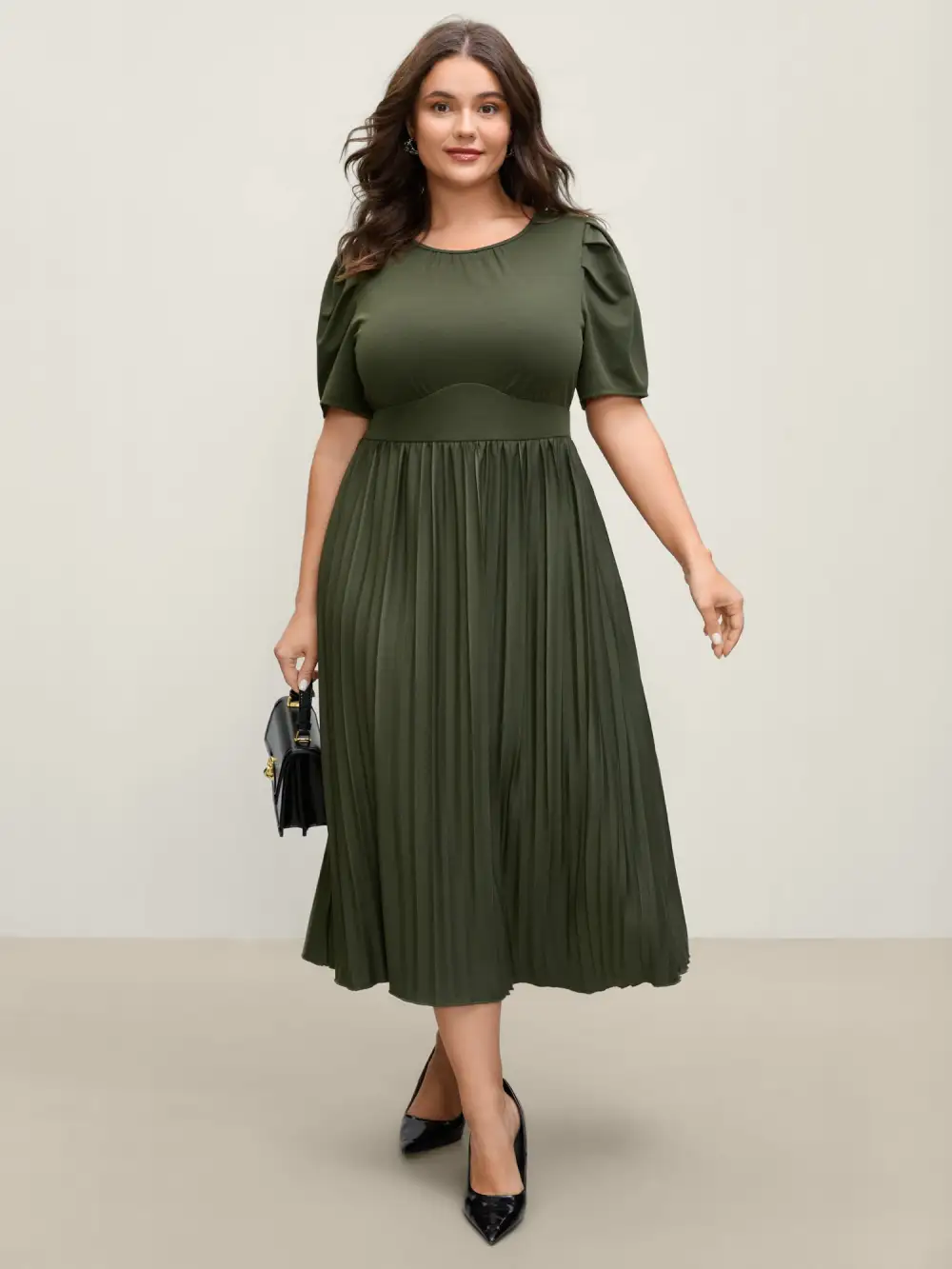 Shop Pleated Skirt Triangular Waist Maxi Dress now and redefine your style with confidence at BloomChic. Tailored for mid and plus-size women. This trendy Dresses Women, sizes 10-30. Color:Emerald;Neckline:Round Neck;Sleeve Type:Bishop sleeve;Prints:Non;Pocket:No-pocket;Belt:No-belt;Closure Type:Non