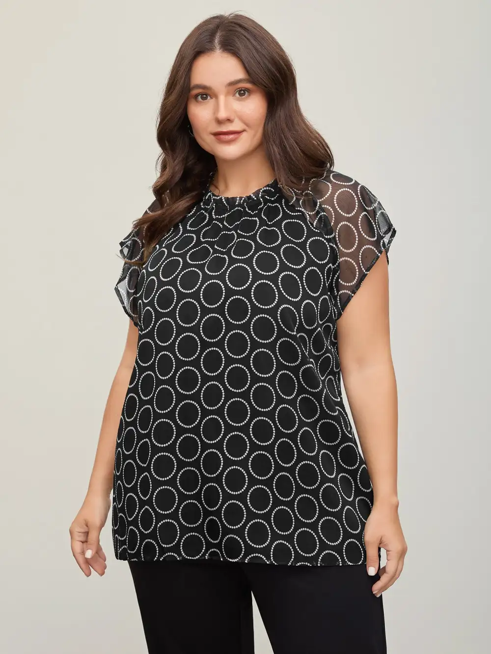 Shop Polka Dot Mock Neck Mesh Patchwork Blouse now and redefine your style with confidence at BloomChic. Tailored for mid and plus-size women. This trendy Tops Women, sizes 10-30. Color:Black;Style:Workwear Essentials Work;Pattern Type:Art&design;Prints:Polka dots;Neckline:Round Neck;Sleeve Type:Ruffle Sleeve;Details:Ruffles, Contrast, See through;Pocket:No-pocket