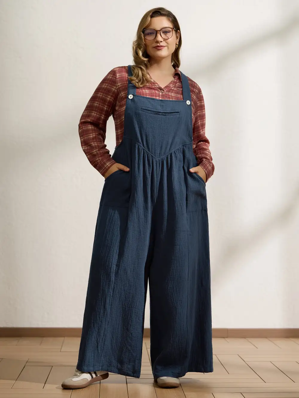 Shop Pure Cotton Adjustable Easy Waist Jumpsuit now and redefine your style with confidence at BloomChic. Tailored for mid and plus-size women. This trendy Jumpsuits Women, sizes 10-30. Color:Aegean;Neckline:Non;Sleeve Type:Sleeveless;Prints:Non;Details:Button, Texture;Pocket:Slanted pocket;Belt:No-belt;Closure Type:Non