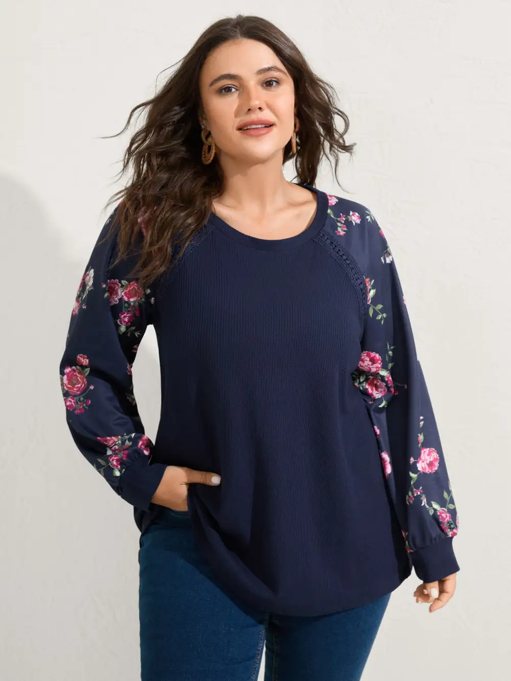 Shop Rosy Sleeve Textured Lace Solid Sweatshirt now and redefine your style with confidence at BloomChic. Tailored for mid and plus-size women. This trendy Tops Women, sizes 10-30. Color:DarkBlue;Neckline:Round Neck;Sleeve Type:Regular Sleeve;Prints:Non;Details:Woven ribbon&lace trim, Contrast, Texture;Pocket:No-pocket;Belt:No-belt;Closure Type:Non