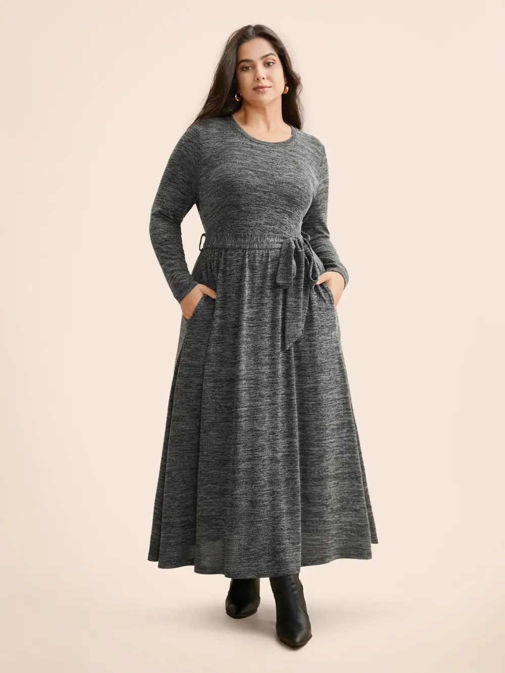 Shop Round Neck Heather Belted Dress now and redefine your style with confidence at BloomChic. Tailored for mid and plus-size women. This trendy Dress, sizes 10-30. You can never go wrong with BloomChic Dresses. Color:DimGray;Style:At the Office;Neckline:Round Neck;Sleeve Type:Regular Sleeve;Prints:Non;Details:Belted, Texture;Pocket:Side seam pocket;Belt:Belt;Closure Type:Non