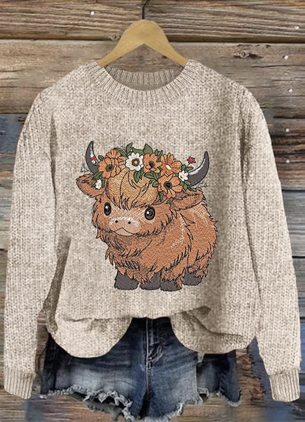 Scottish Cute Little Cow Round Neck Sweater 10891150