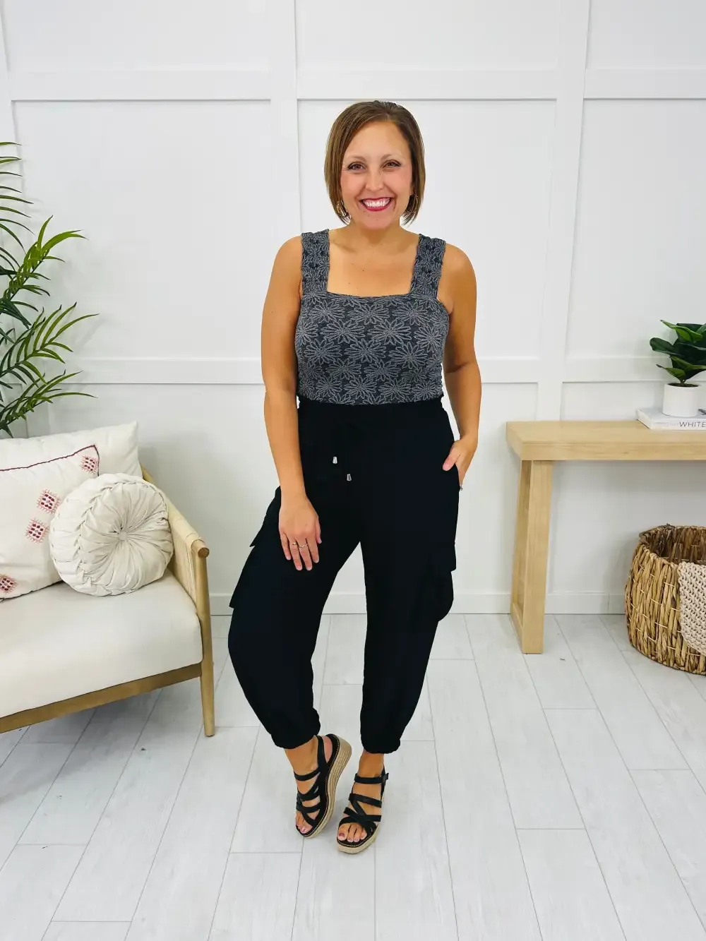 Designed with a relaxed fit, soft textured fabric, and an easy pull-on waistband, these joggers bring both style and ease to your everyday wardrobe. Functional cargo pockets and cinched ankle cuffs add just the right touch of laid-back cool, making them a go-to for anything from lounging to stepping out in style!