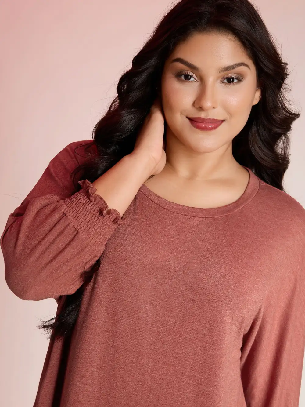 Shop Shirred Cuff Sleeve Round Neck T-Shirt now and redefine your style with confidence at BloomChic. Tailored for mid and plus-size women. This trendy Tops Women, sizes 10-30. Color:Coral;Prints:Non;Neckline:Round Neck;Sleeve Type:Dolman Sleeve;Pocket:No-pocket