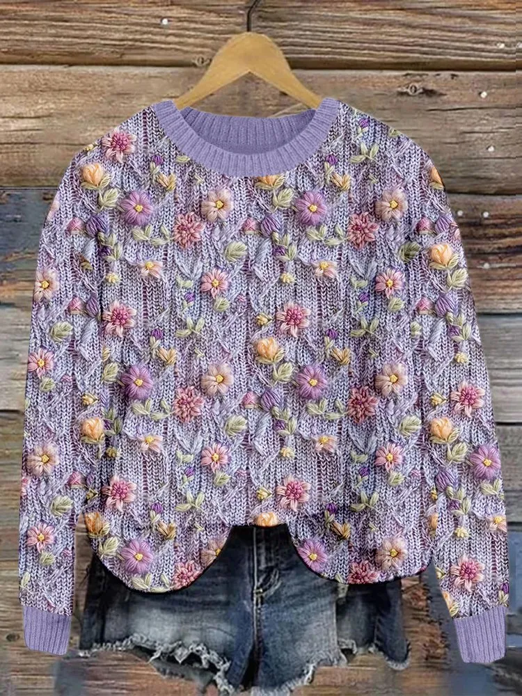 Small flower knitted round neck sweater