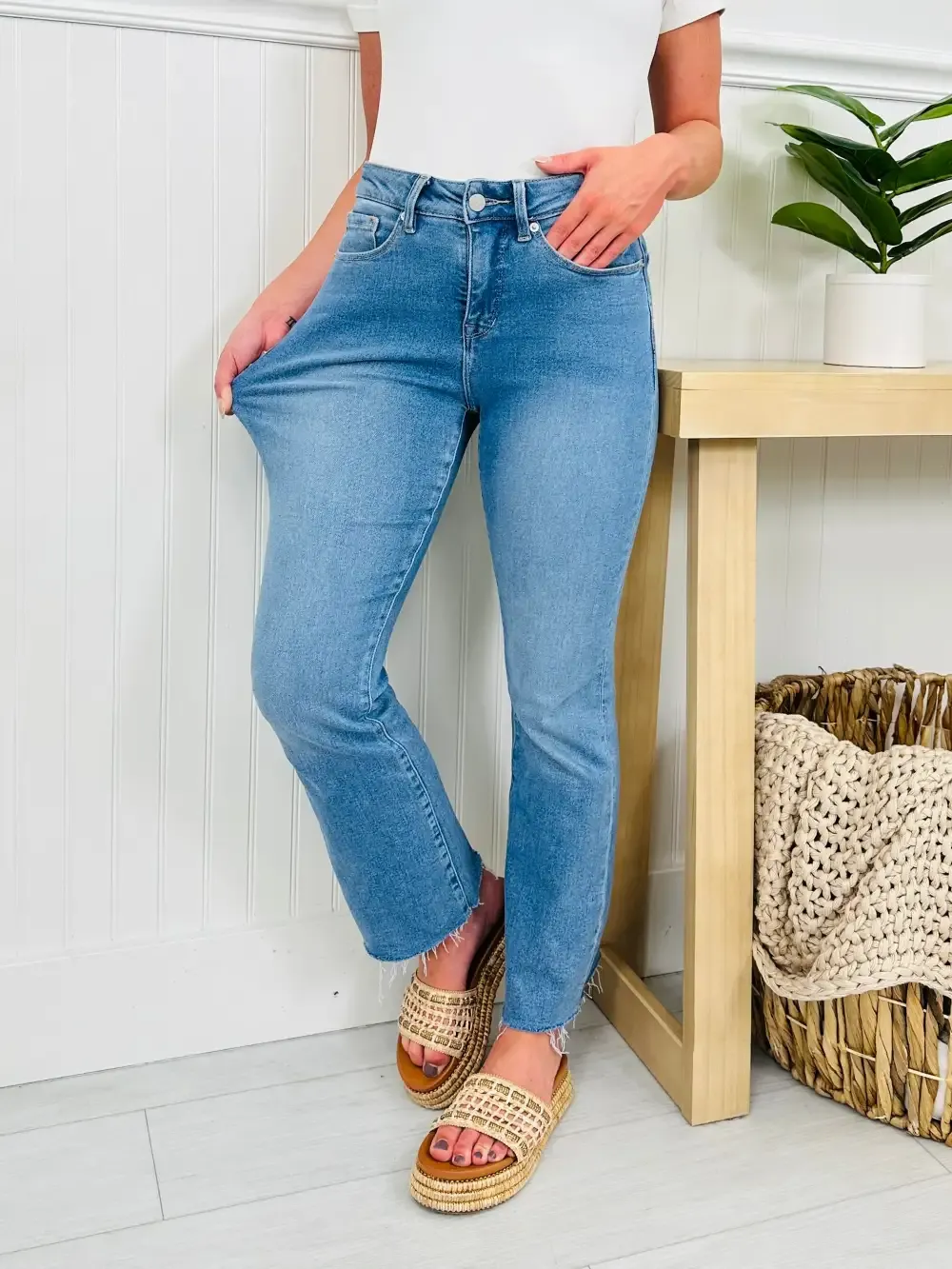 The high rise holds you in and the raw hem makes these a cropped jean on every inseam! Cropped jeans are the number one trending style this season and with zero holes or distressing, you can wear these jeans from work to weekend to everywhere in between!
