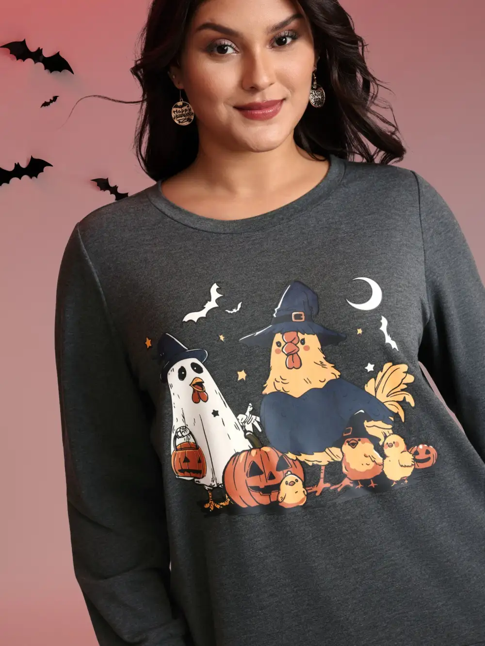 Shop Spooky Midnight Halloween Print Sweatshirt now and redefine your style with confidence at BloomChic. Tailored for mid and plus-size women. This trendy Tops Women, sizes 10-30. Color:DimGray;Neckline:Round Neck;Sleeve Type:Regular cuff;Pattern Type:Animals, Halloween;Prints:Non;Details:Non;Pocket:No-pocket;Belt:No-belt;Closure Type:Non