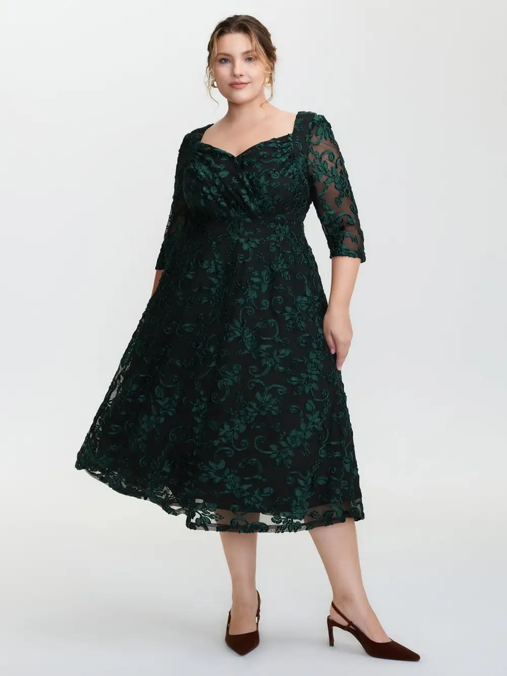 Shop Stretchy Laser Cut Mesh Crossover Neckline Midi Dress now and redefine your style with confidence at BloomChic. Tailored for mid and plus-size women. This trendy Dress, sizes 10-30. You can never go wrong with BloomChic Dresses. Color:Cyan;Neckline:Overlap Collar;Sleeve Type:Bishop sleeve;Prints:Synthetic texture;Pocket:Side seam pocket;Belt:No-belt;Closure Type:Non