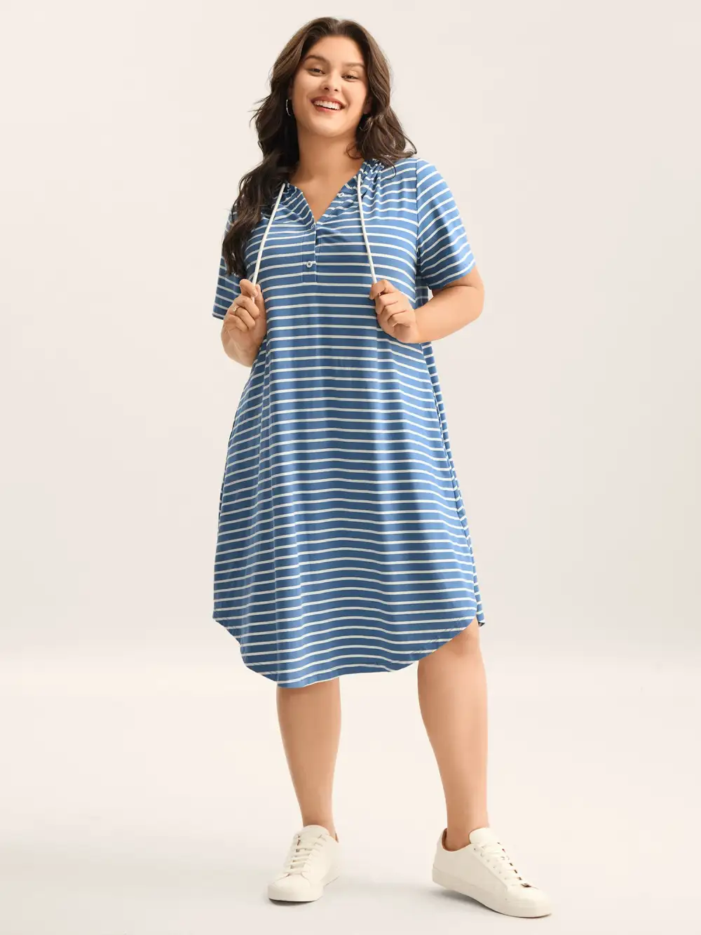 Shop Stripe Print Curvy Hem Hooded Midi Dress now and redefine your style with confidence at BloomChic. Tailored for mid and plus-size women. This trendy Dress, sizes 10-30. You can never go wrong with BloomChic Dresses. Color:Stone;Neckline:Hooded;Sleeve Type:Regular Sleeve;Prints:Stripes;Pocket:Side seam pocket;Belt:No-belt;Closure Type:Button