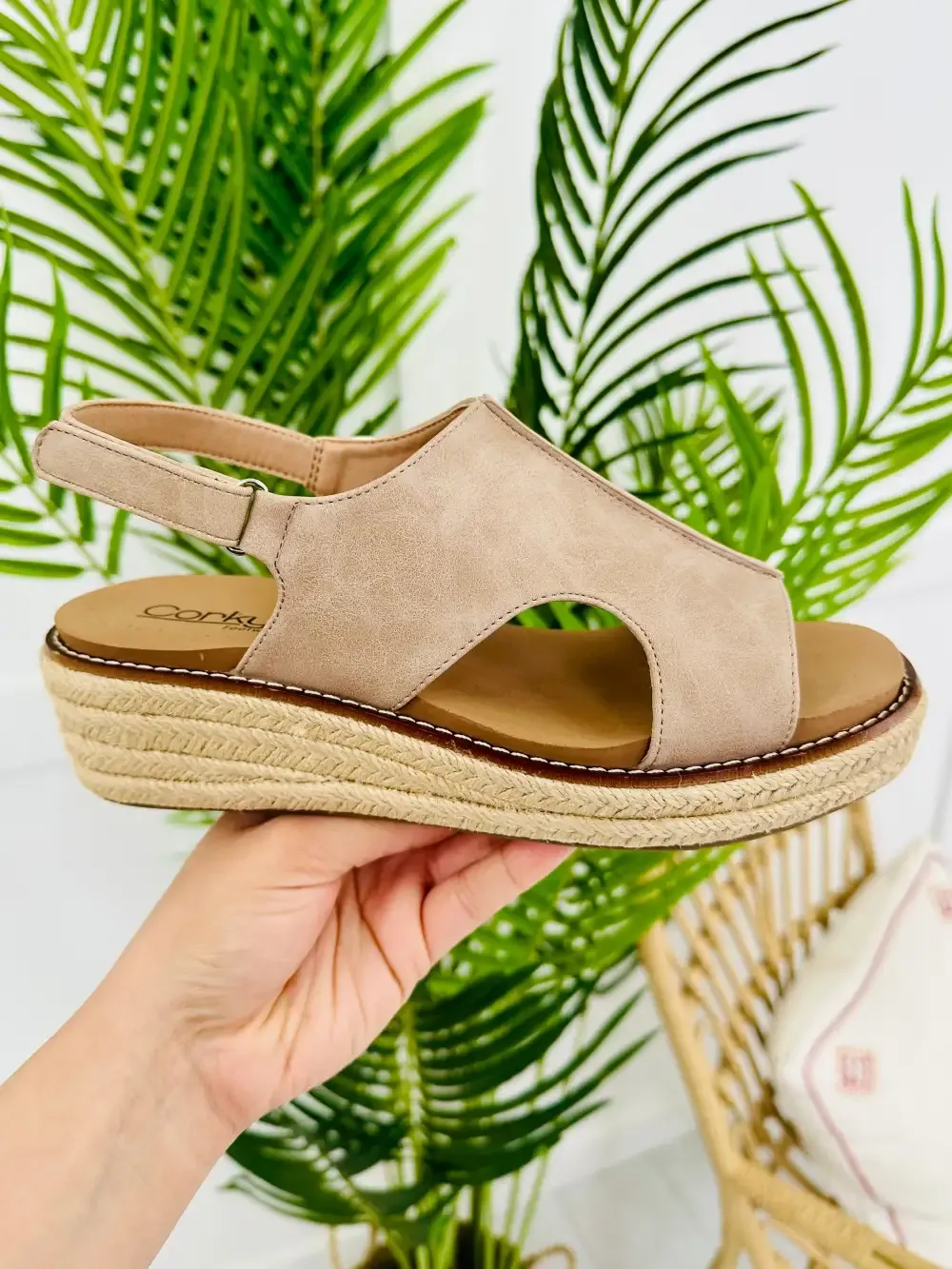 These stylish espadrille wedges offer the perfect blend of comfort and chic, with a trendy open-toe design and slingback strap for a secure fit. The neutral color and jute detailing on the wedge add a touch of sophistication to any outfit, while the lightweight construction ensures all-day wearability.