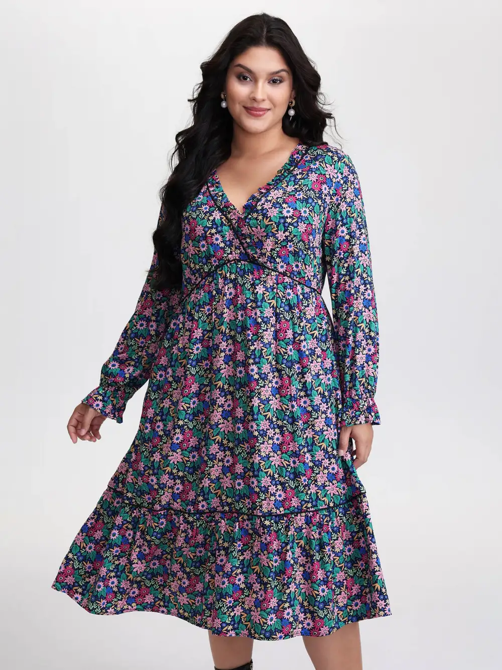 Shop Supersoft Ribbon Floral Print Midi Dress now and redefine your style with confidence at BloomChic. Tailored for mid and plus-size women. This trendy Dress, sizes 10-30. You can never go wrong with BloomChic Dresses. Color:Indigo;Neckline:V-neck;Sleeve Type:Lantern Sleeve;Prints:Ditsy floral;Details:Woven ribbon&lace trim, Frill Trim, Contrast;Pocket:Side seam pocket;Belt:No-belt;Closure Type:Non