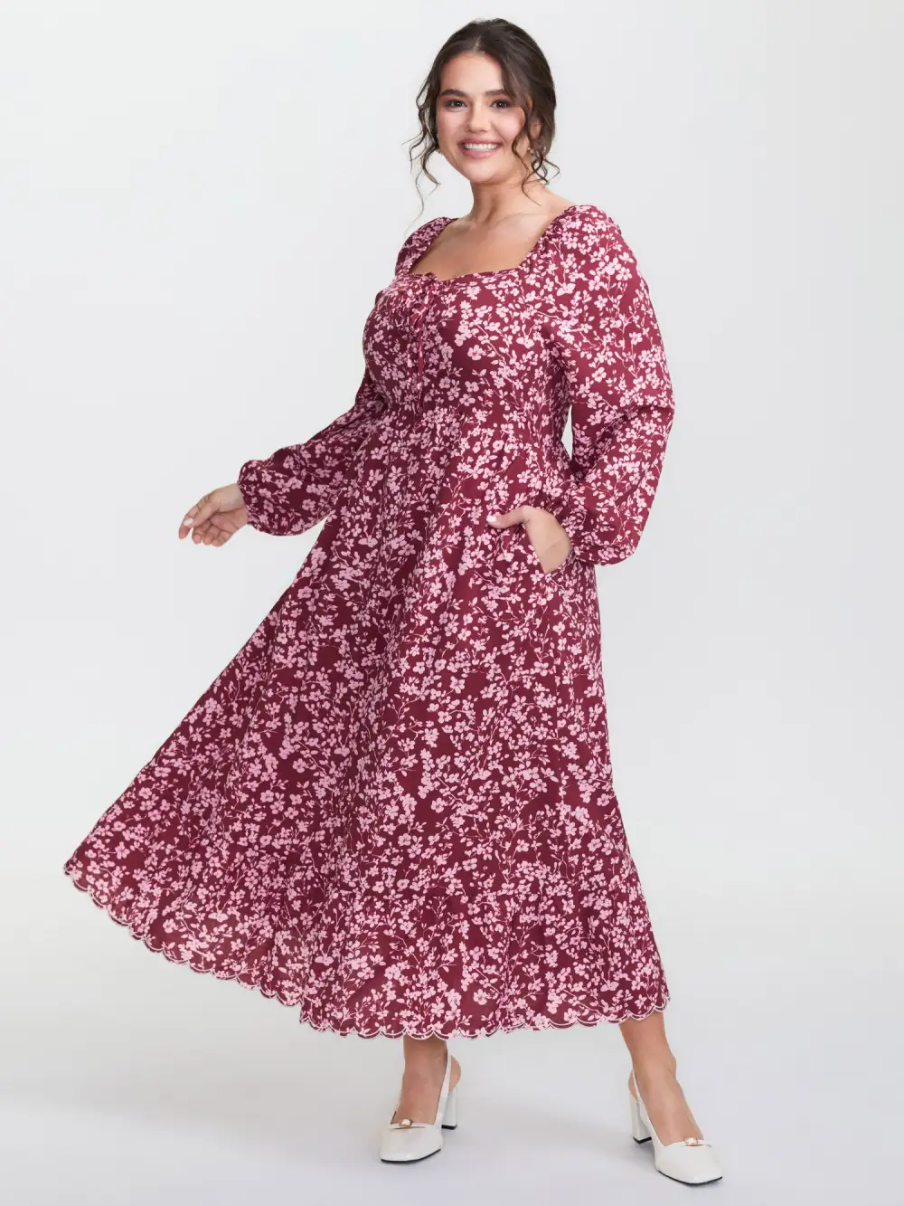 Shop Sweet Floral Adjustable Bust Maxi Dress now and redefine your style with confidence at BloomChic. Tailored for mid and plus-size women. This trendy Dress, sizes 10-30. You can never go wrong with BloomChic Dresses. Color:Burgundy;Neckline:Square Neck;Sleeve Type:Lantern Sleeve;Prints:Ditsy floral;Details:Tie knot;Pocket:Side seam pocket;Belt:No-belt;Closure Type:Non