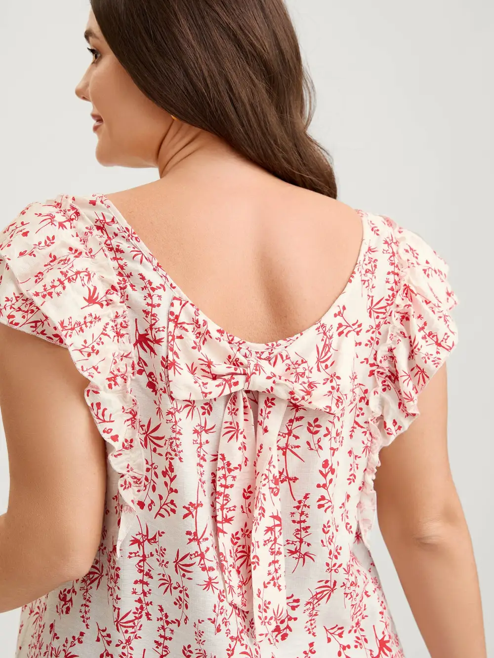 Shop Sweet Floral Bow Back Flutter Blouse now and redefine your style with confidence at BloomChic. Tailored for mid and plus-size women. This trendy Tops Women, sizes 10-30. Color:Brightred;Prints:Ditsy floral;Neckline:Square Neck;Sleeve Type:Cap sleeve;Pocket:No-pocket