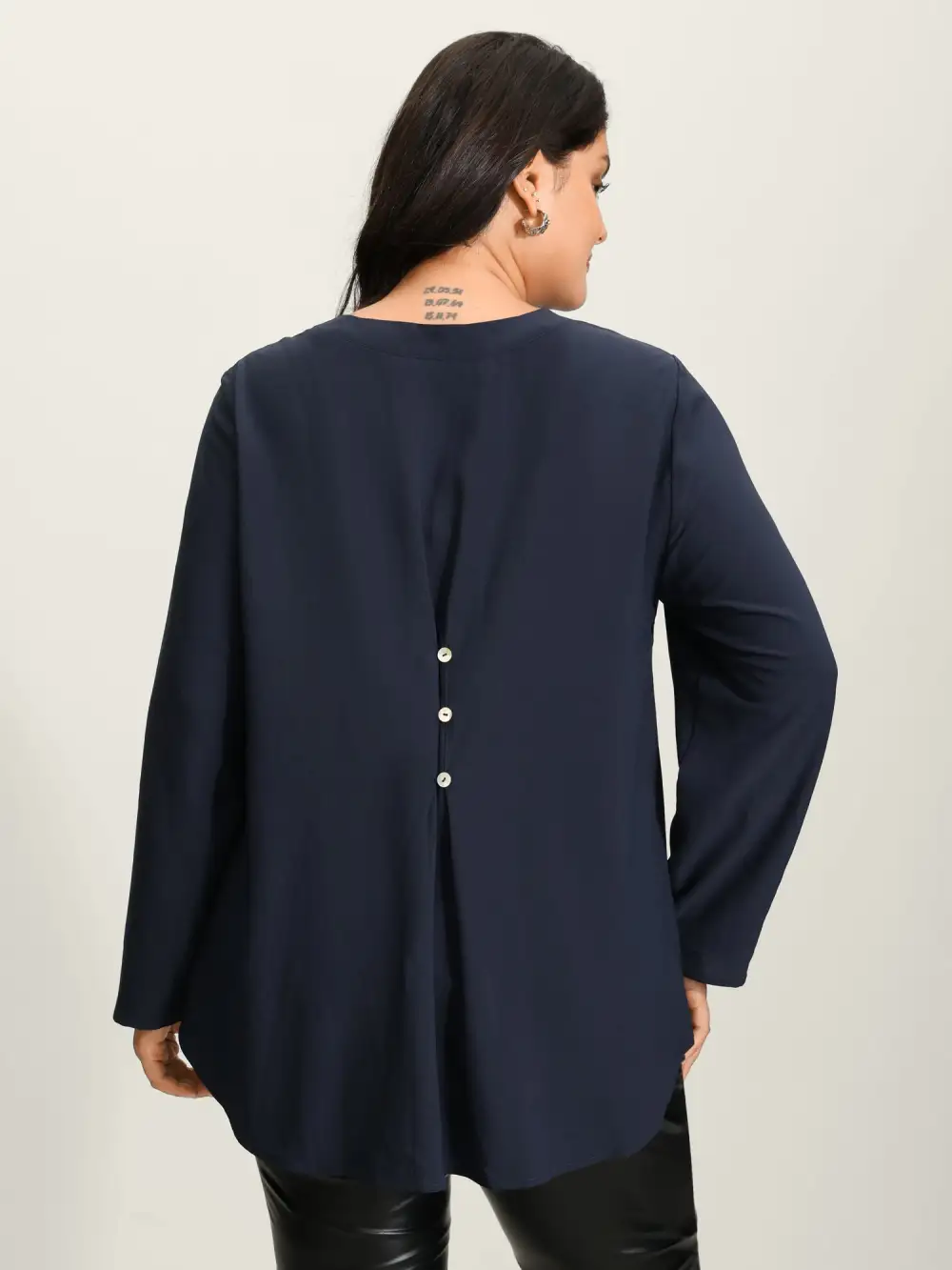 Shop Tab Sleeve Button Back Detail Blouse now and redefine your style with confidence at BloomChic. Tailored for mid and plus-size women. This trendy Tops Women, sizes 10-30. Color:Indigo;Prints:Non;Neckline:Flat collar with V-notch;Sleeve Type:Regular Sleeve;Details:Button;Pocket:No-pocket