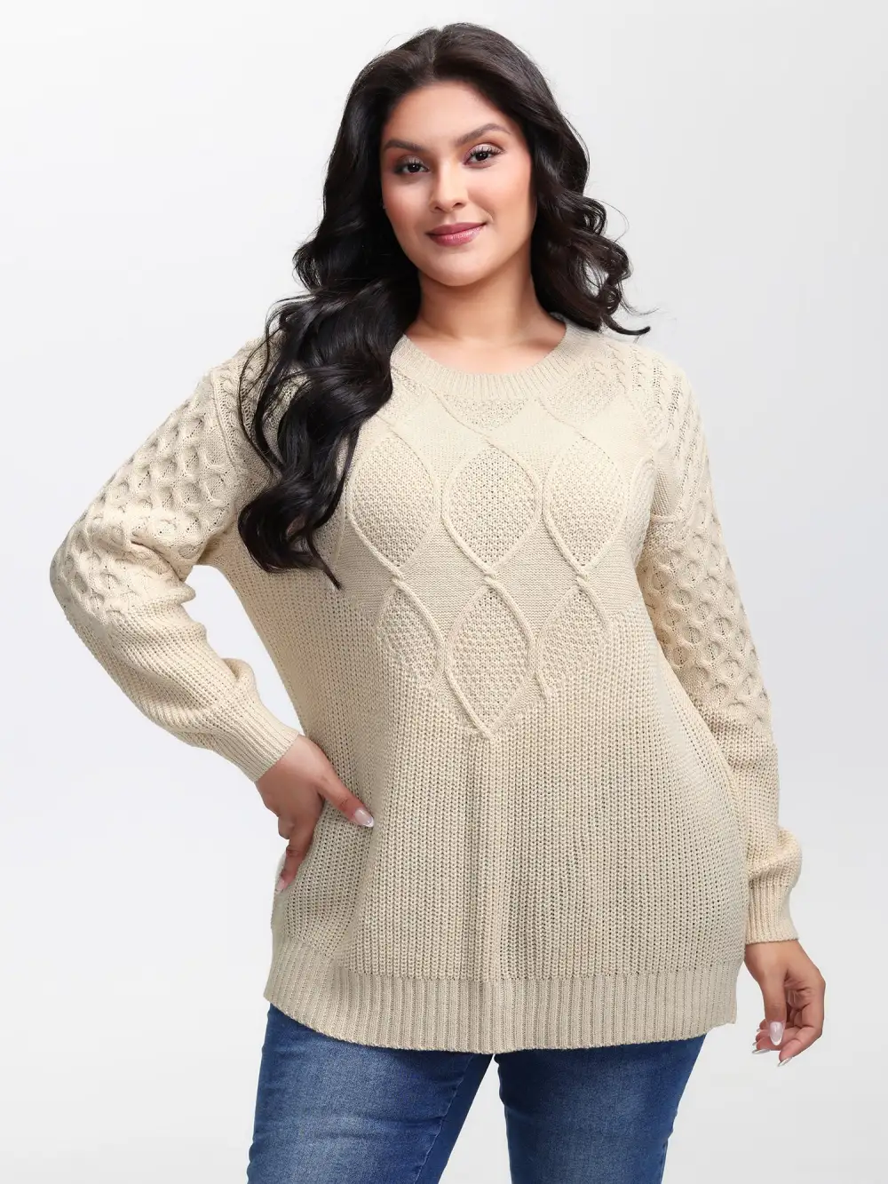 Shop Textured Round Neck Ribbed Pullover now and redefine your style with confidence at BloomChic. Tailored for mid and plus-size women. This trendy Sweaters Cardigans Women, sizes 10-30. Color:Beige;Style:Casual;Neckline:Round Neck;Sleeve Type:Drop shoulder sleeve;Prints:Non;Details:Texture;Pocket:No-pocket;Belt:No-belt;Closure Type:Non