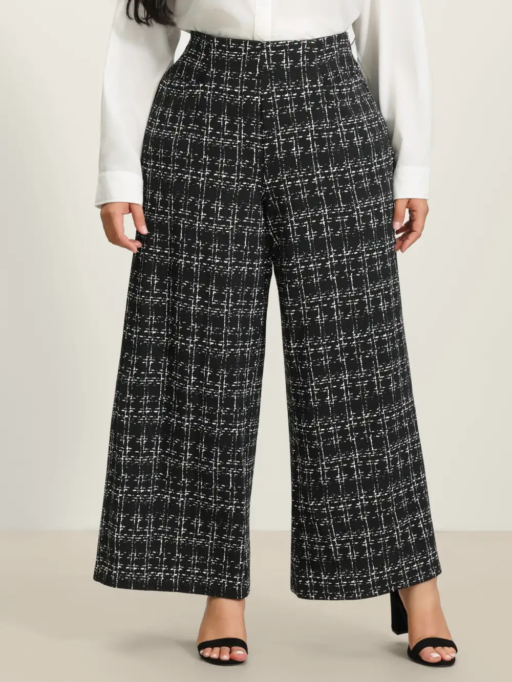 Shop Tweed Texture Wide-Leg Pants now and redefine your style with confidence at BloomChic. Tailored for mid and plus-size women. This trendy Bottoms Women, sizes 10-30. Color:Black;Waist Design:Mid Rise;Prints:Plaid;Details:Texture;Pocket:Slanted pocket;Belt:No-belt;Closure Type:Non